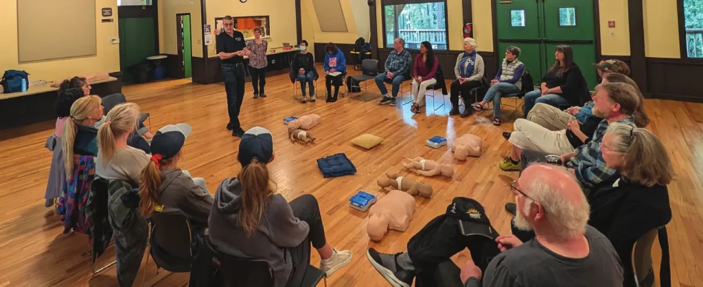 The KMVFB board hosted a CPR class at the community center on 7/26/2025. Al Gook from the Center for Education, Research & Professional Development, at Stanford Health Care, was the lead instructor, ably assisted by Kathleen Bevin. Thirty-five thousand heart attacks happen outside a hospital setting every year, 80% in someone’s home. High-Quality Chest compression is the key to survival. The 20 enthusiastic participants learned proper techniques during the class, including the use of an AED. It is important to note that the American Heart Association continually updates CPR guidelines every five years, underscoring the importance of maintaining current certifications and skills to ensure optimal effectiveness in emergency situations. We are pleased to announce that the KMVFB plans to offer another CPR class in the coming year, providing more opportunities for our community members to become prepared and confident in responding to cardiac emergencies. Thanks go to Sumit Roy for organizing this class!